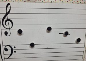 マグネットの音符を5線上に置いていきます。